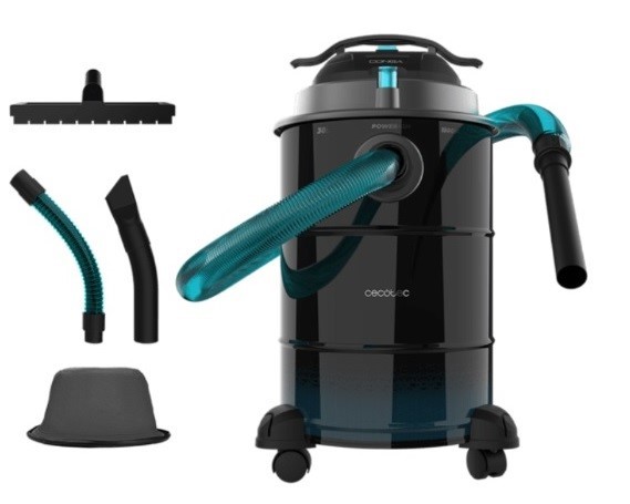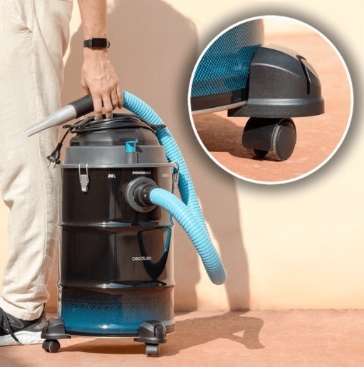 Aspirador de cinzas Conga Ash 6000 Easy Go Home XL de 30 l, 1500 W de potência e fácil de transportar graças às suas rodas e pega.