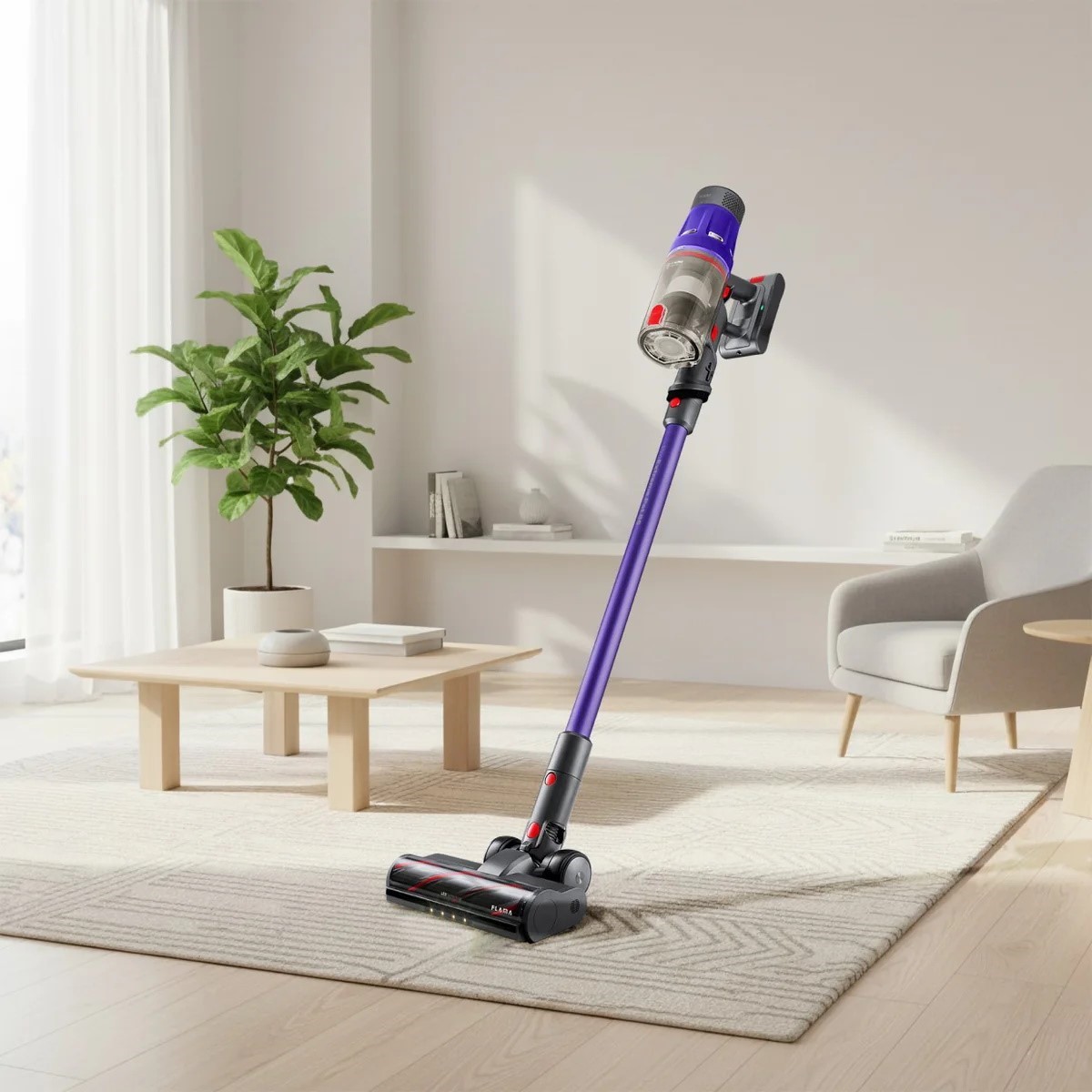 A superpotência de 500W, aliada ao motor Brushless DC, oferece um desempenho excecional, garantindo uma sucção poderosa e constante. A escova motorizada multi-pavimentos adapta-se a diferentes tipos de superfícies, removendo eficazmente pelos de animais e outras sujidades. A iluminação LED facilita a visualização de poeiras em zonas mais escuras, enquanto o sensor de sujidade em modo automático ajusta automaticamente a potência de sucção, otimizando o consumo de energia e garantindo uma limpeza mais eficaz.