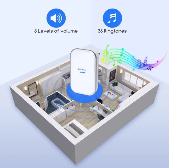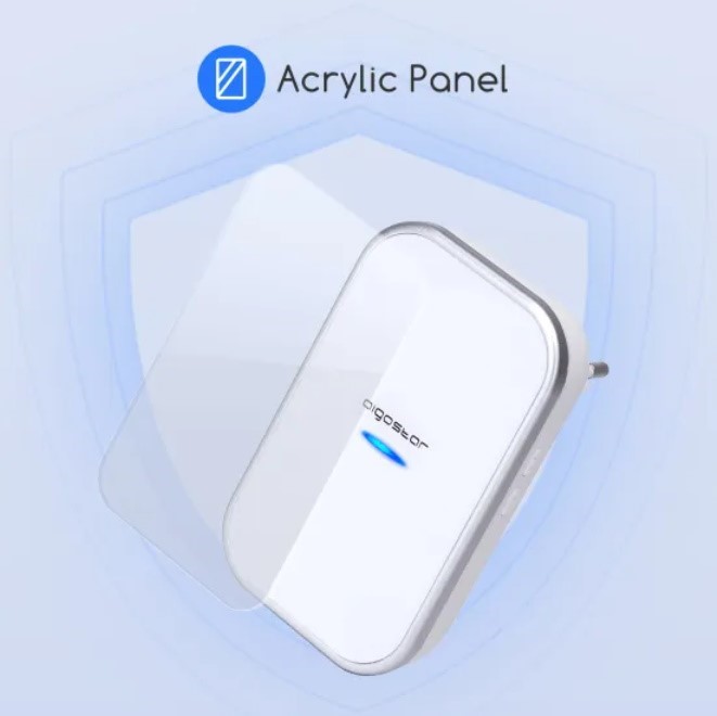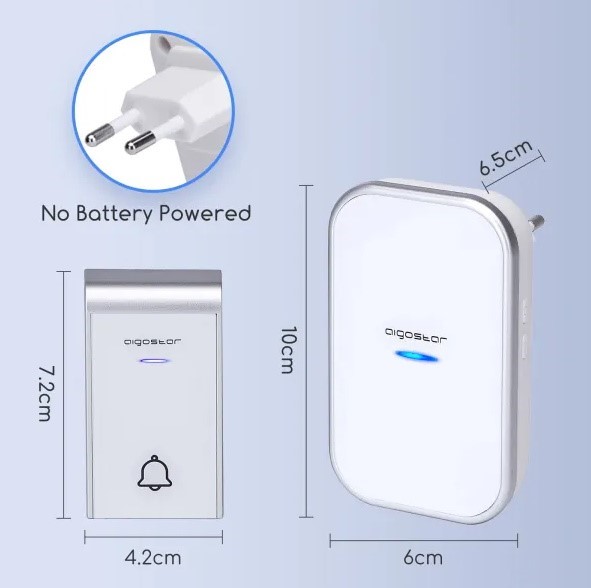 Descrição: O primeiro a usar painéis acrílicos na indústria; Longa distância de controlo de 150m; Excelente desempenho à prova de água IP44; 36 melodias polifônicas; Bateria do transmissor: 23A 12V alcalina (incluída)