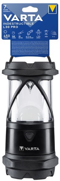 A cabeça removível e um gancho integrado na base permitem pendurar a lanterna