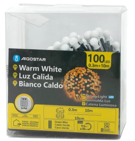 Descrição: 100LED;10cm/LED;8 funções + memória + temporizador