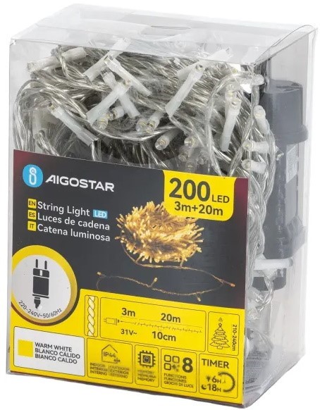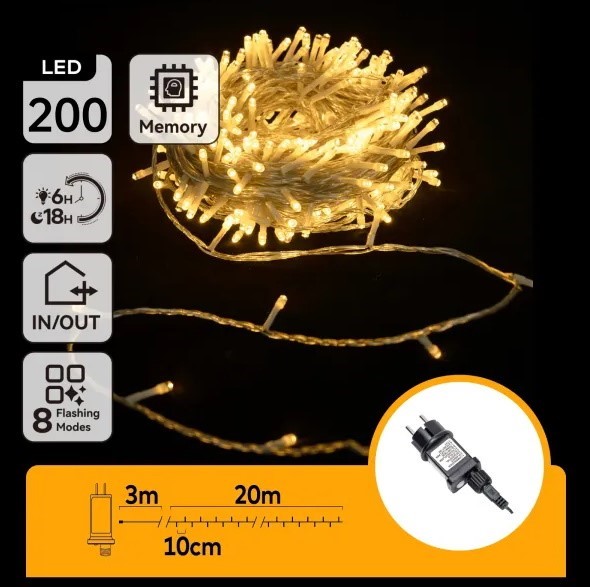 Descrição: 200LED;10cm/LED;8 funções + memória + temporizador