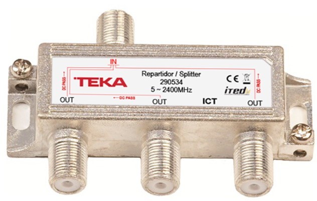 Repartidor com portas F de 3 vias para utilização nas redes SMATV.